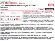 Très en demande actuellement à Toronto et aux États-Unis, la chanteuse Anne Bisson effectuera un arrêt au Festival de jazz de Québec jeudi, alors qu’elle présentera son spectacle au Clarendon.